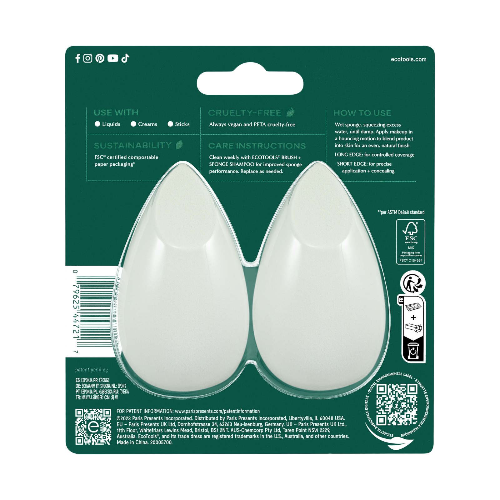 • Includes: (2) Blurring Blender Makeup Sponges