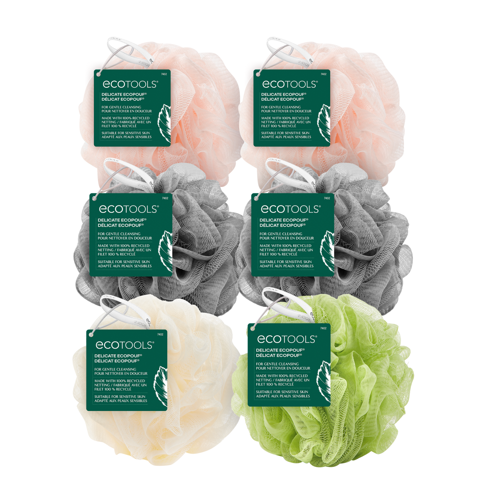 The EcoTools Delicate EcoPouf is our sustainable shower loofah designed with soft netting for an all-over deep clean and gentle exfoliation. Achieve a rich lather from with your favorite scrub, body wash, or cleanser to wash away impurities and remove dead skin cells. When you’re finished, just rinse, and hang the shower pouf to dry from the attached string. It’s gentle enough for all skin types- even more sensitive skin. Just don’t forget to replace the loofah sponge every 30 days! Designed with everyone’s needs in mind, EcoTools’ superior assortment of skincare and bath accessories are accessible luxuries, good for you and the planet. The Delicate EcoPouf is made with 100% recycled plastic netting, and, as with all our EcoTools products, it is 100% cruelty-free and vegan.