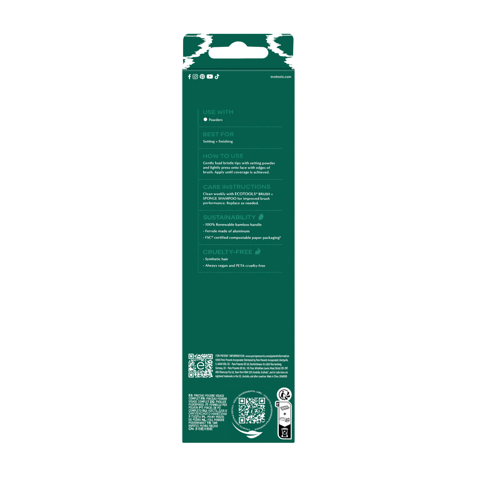 The EcoTools Full Powder Brush has a large, fluffy brush head to apply and blend out your favorite powder products for all-over, flawless coverage. The tapered bristles on our large powder brush provide even coverage wherever you need it. It’s best used with both loose powder and pressed powder to set and finish. Superior performance made sustainable. Our makeup brushes are made with 100% renewable bamboo handles, aluminum ferrules, and soft, synthetic brush hair. As with all our EcoTools products, this brush is 100% cruelty-free and vegan. The Full Powder Brush is easy to clean with our EcoTools Brush + Sponge Shampoo for improved brush performance.